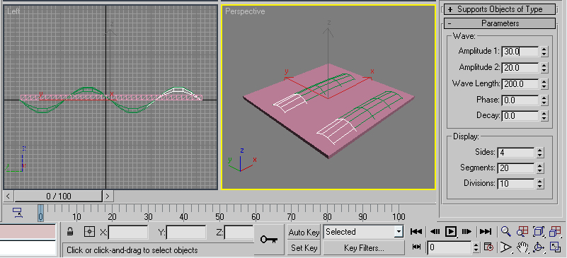 - Turn on Auto Key and go to any frame you like. Change the Phase of the space warp. Do this several times. At frame 100, change the Phase back to zero.